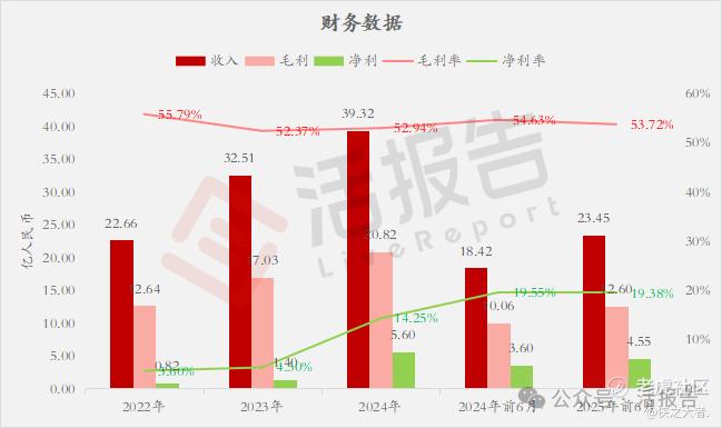 收入分别约为人民币22.66亿、32.51亿、39.32亿、18.42亿、23.45亿,2025年前6月同比+27.35%;