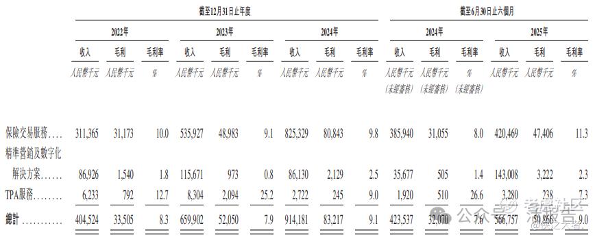 公司的收入主要来自:(i)保险交易服务,公司就协助保险公司成功交付由其承保的保险产品向其收取佣金;(ii)精准营销及数字化解决方案,包括各企业支付的项目费用;及(iii)主要由保险公司支付的TPA服务费。