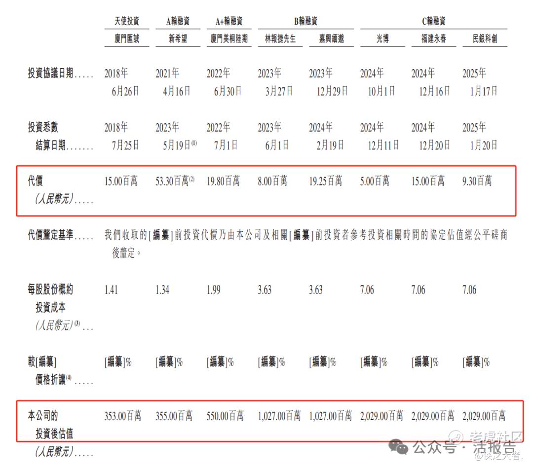 公司共计进行过五轮融资。在2024年12月的C轮融资中,公司的投后估值约20.29亿人民币。