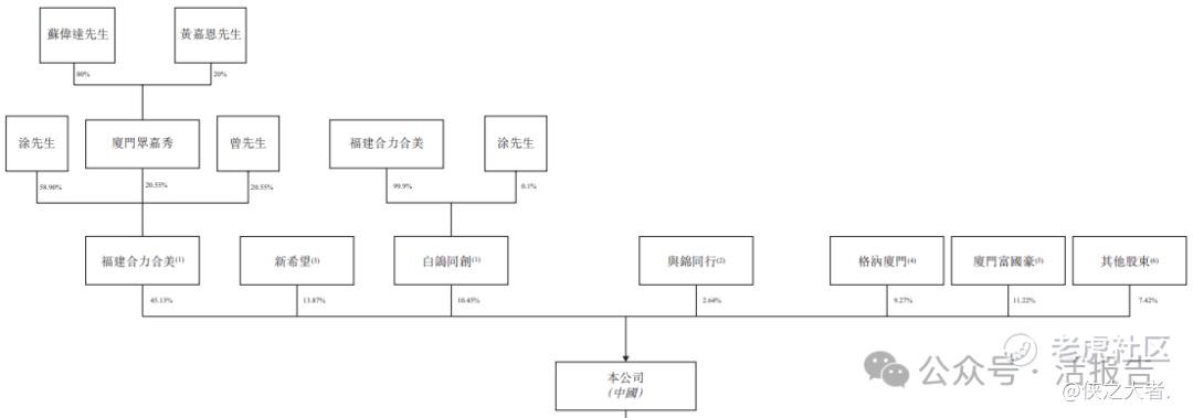 一致行动人涂锦波先生、曾建华先生、苏伟达先生、黄嘉恩先生、厦门众嘉秀、福建合力合美及白鸽同创合共持股约55.58%;