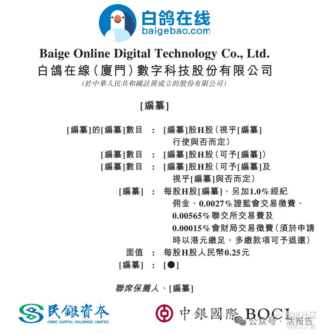 2025年12月23日,白鸽在线通过港交所聆讯,拟在香港主板上市,联席保荐人为民银资本、中银国际。公司已于2025年11月28日完成中国证监会境外上市备案。