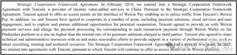 这份协议在2023年2月到期后,拼多多在财报中低调透露双方于2023年签署协议,腾讯将继续在其微信平台上向拼多多提供接入点,但是详细的合作内容却并未透露。