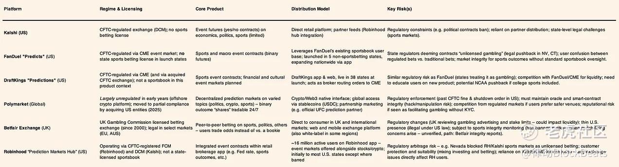 作为回应,FanDuel 与 DraftKings 等既有巨头将预测类产品限制在「尚无法律体育博彩」的司法辖区内,凸显分发策略正由监管边界而非用户需求主导。其核心含义已十分清晰:决定规模的不是产品创新,而是监管容忍度。合约设计、结算条款、营销措辞与地理铺开路径,正被系统性地工程化,以通过法律定性审查;能够在被接受的监管框架内运营的平台,将获得更为持久的优势。在这一市场中,监管清晰度本身构成护城河,而不确定性则直接限制增长。