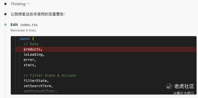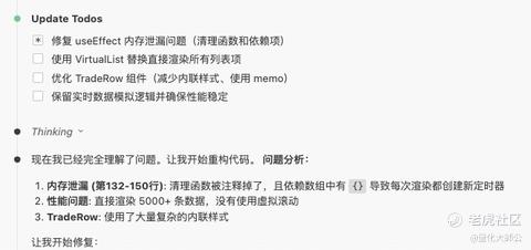 甚至在指令之外,M2.1 还主动表现出了“代码洁癖”。它顺手对 TradeRow 子组件进行了深度清理,剥离冗余内联样式的同时包裹了 React.memo。这种防御性编程思维,把不必要的子组件重渲染压到了最低。