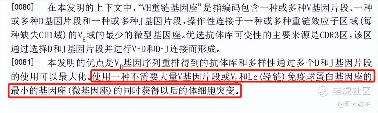 该专利认定书显示HCAb平台采用的是较早的转基因技术,其特点在于“使用不需要大量V基因片段的最小基因座的同时获得体细胞突变”。