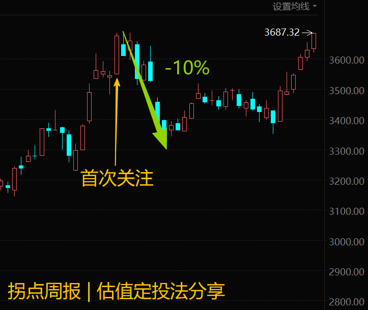 我们复盘一下整个心路历程。还记得我们第一次在《拐点周报》里明确提到它吗?那是11月9号(拐点周报是每周日发布),随后的第一个关注日是11月13日(每周四定投)。如果你在兴奋之下,选择在11月13日那天“梭哈”进场,会发生什么?