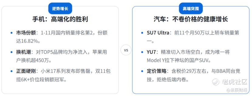 面对激烈的市场竞争,小米展现出了极强的韧性。“人车家全生态”战略已形成独特护城河,不再局限于单一硬件销售,而是转向生态价值的深度挖掘。