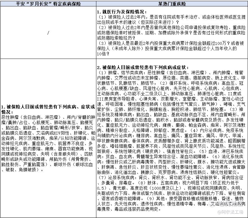 首先,它是一款友好型保障方案,通过设置较低的投保门槛,让有轻微亚健康问题的家庭支柱也能顺利获得保障。“岁月长安”仅有两条健康告知,仅关注严重疾病史和核心情况,相比普通重疾险、医疗险动辄覆盖肿瘤、循环系统、神经系统等近10类情况的严格问询,投保门槛大幅降低。