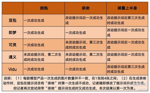 新京报尝试得出结论,使用豆包、即梦、可灵、通义、Vidu五款支持多图参考的模型产品(网页或App)生成与男艺人的合影,拥抱、亲吻等亲密动作均可实现,甚至还能生成男性裸露上半身这类具有擦边意味的合影。