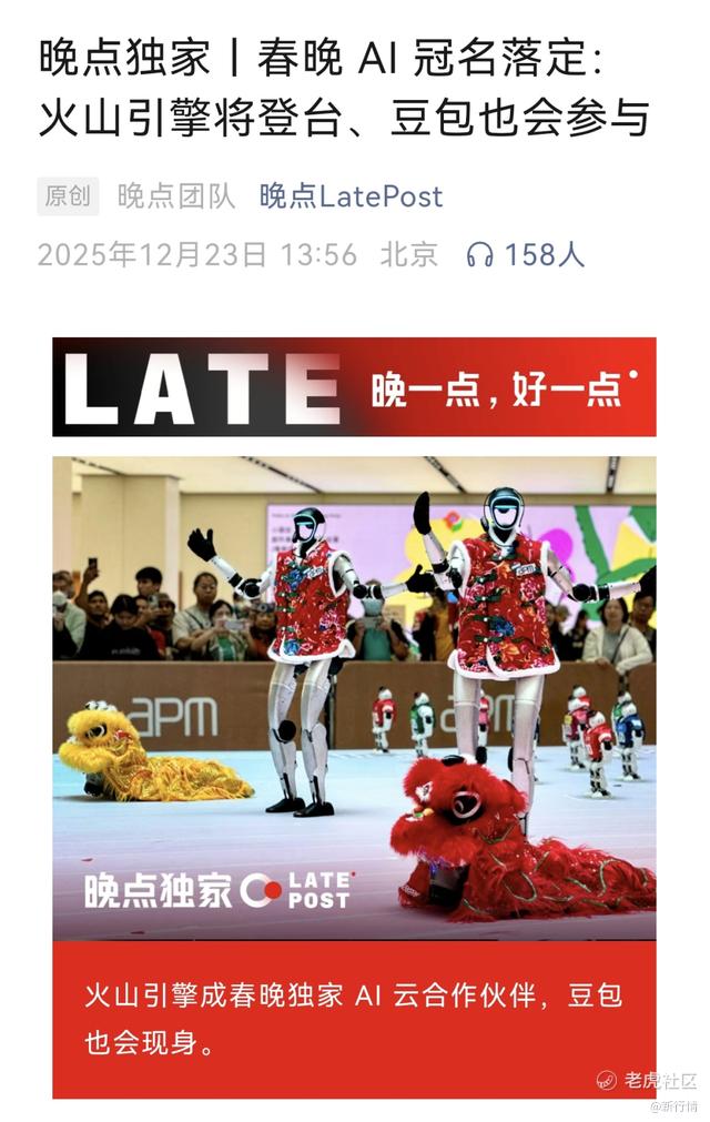 值得一提的是,前两天,字节跳动旗下火山引擎拿下了2026年春晚独家AI云合作,豆包也将在春晚配合上线多种互动玩法。