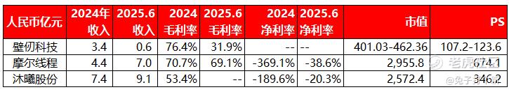 首先是可比公司,摩尔线程和沐曦股份,这两家公司都在A股上市,截止到12.25收盘,摩尔线程市值2956亿元,上市首日涨超425%,沐曦股份2575亿元,上市首日涨超693%。