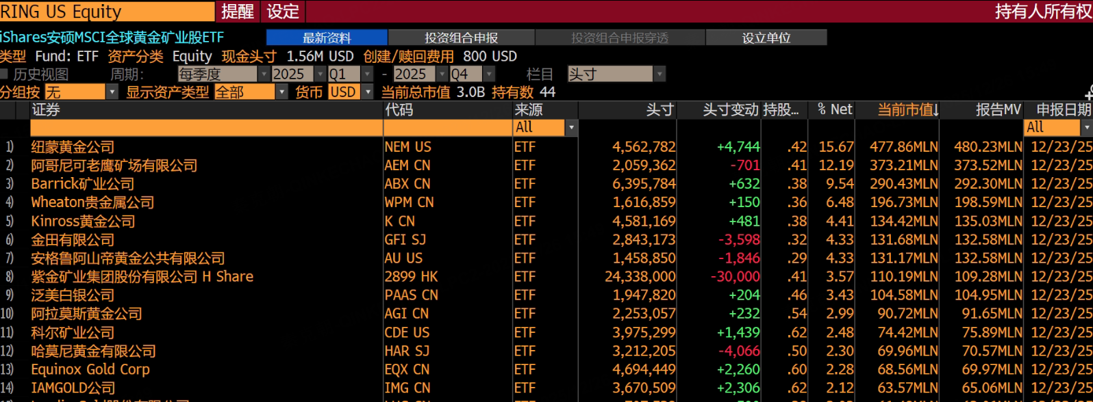 涨幅第四的是 $iShares MSCI Global Gold Miners ETF(RING)$ ,中文名:iShares安硕MSCI全球黄金矿业ETF,年回报177%。最大持仓股 $纽曼矿业(NEM)$ ,占资产净值的15.7%,还持有 $紫金矿业(02899)$