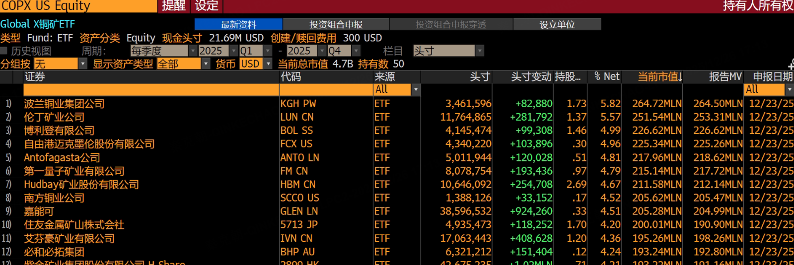 涨幅第九的是 $铜矿ETF-Global X(COPX)$ ,为规模最大的铜矿ETF,年内回报超94%:
