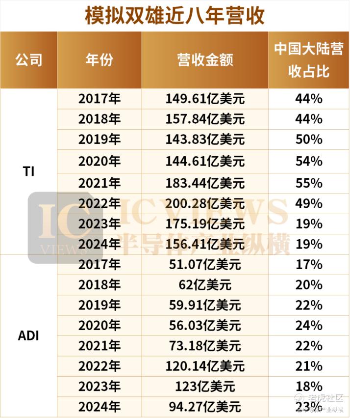 从图表数据看,TI 与 ADI 在华收入占比呈现 “先升后分化” 的趋势。