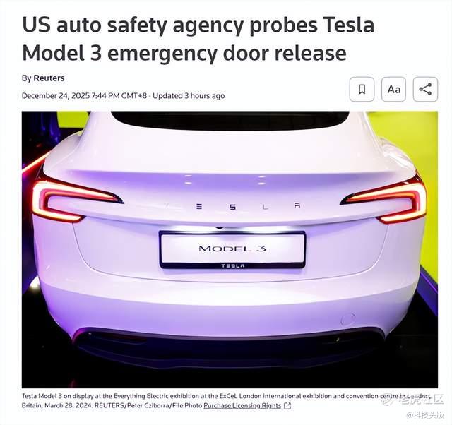美国时间2025年12月23日,NHTSA正式启动编号为EA25-004的工程分析,调查范围明确覆盖2022年生产的179,071辆Model 3,核心聚焦三个问题:应急机械装置的可及性、标识清晰度、操作直观性。