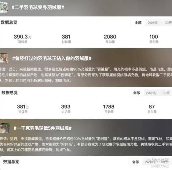 在这些话题中,羽绒服那是从头到尾的塌房,从飞丝到有毒填充物,从儿童羽绒服到成年羽绒服,不管是直播间的贴牌,还是大牌,从几百到几千的产品,在这场塌房事件中,没有缺席者。