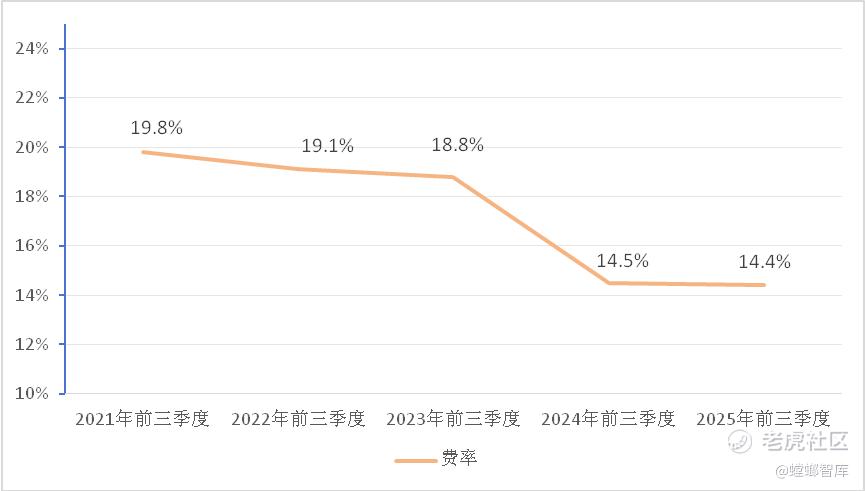 我们梳理了海尔智家过去5年的三季报,发现从2021前三季度到2025前三季度,海尔智家费率从19.8%持续优化至14.4%。