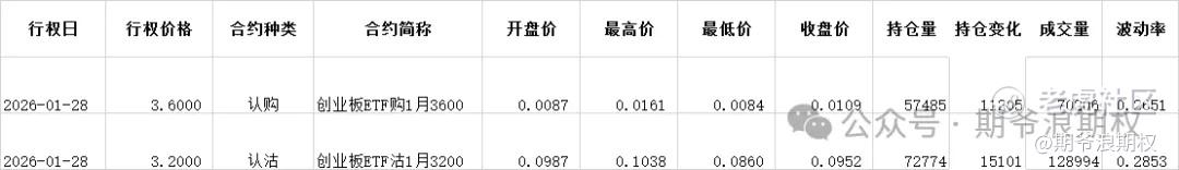 (3)创业板ETF期权:12月最大持仓范围3100-3200,今收3.226,上涨0.12%,5连阳。期权1月合约,认购和认沽全部都是增仓。认购增仓集中在3000-3600,合计4.7W张;认沽增仓集中在2800-3600,合计6.2W张。变化超过1W张的仓位如下,都是1月的认购和认沽,增仓的行权价都偏高。