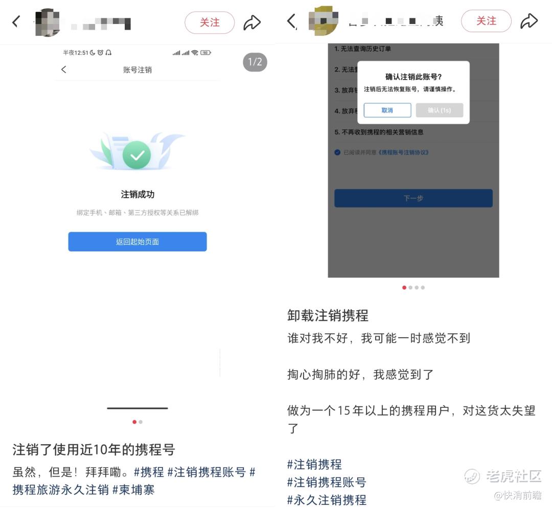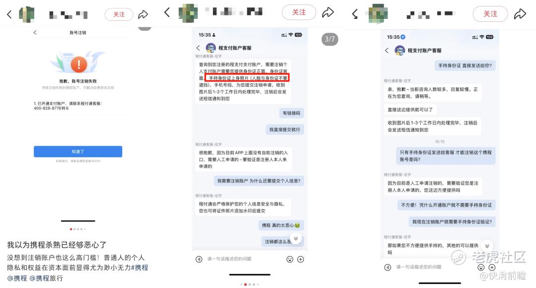上述两方面忧虑叠加,直接引发了携程用户的“恐慌性出逃”。在社交媒体上,不少用户贴出自己卸载携程App并成功注销账号的截图,甚至一些携程钻石等级的老用户也毅然选择离开。