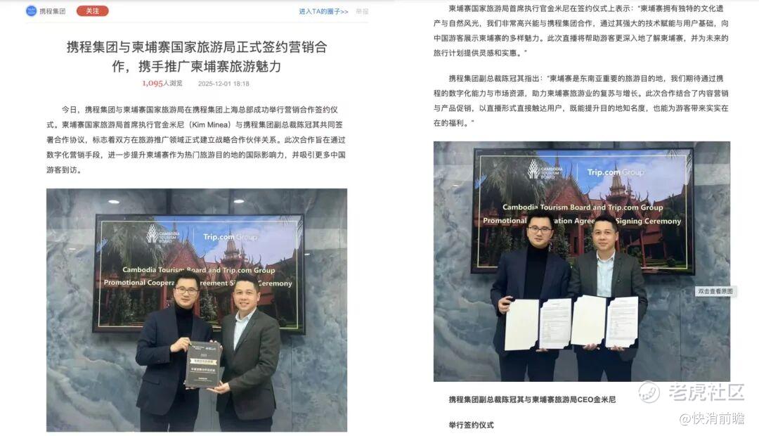 声明首先确认了与柬埔寨国家旅游局签署营销合作协议的事实及合作内容,但强调“协议原计划于柬埔寨对华免签后上线广告内容,基于中国驻柬埔寨大使馆近期发布的安全提醒,我司第一时间暂停了原定的投放动作,合作未曾启动。”也就是说,受安全局势变化影响,携程已主动叫停了原定在柬宣传投放的计划。换言之,这次合作实际上尚未真正落地执行。