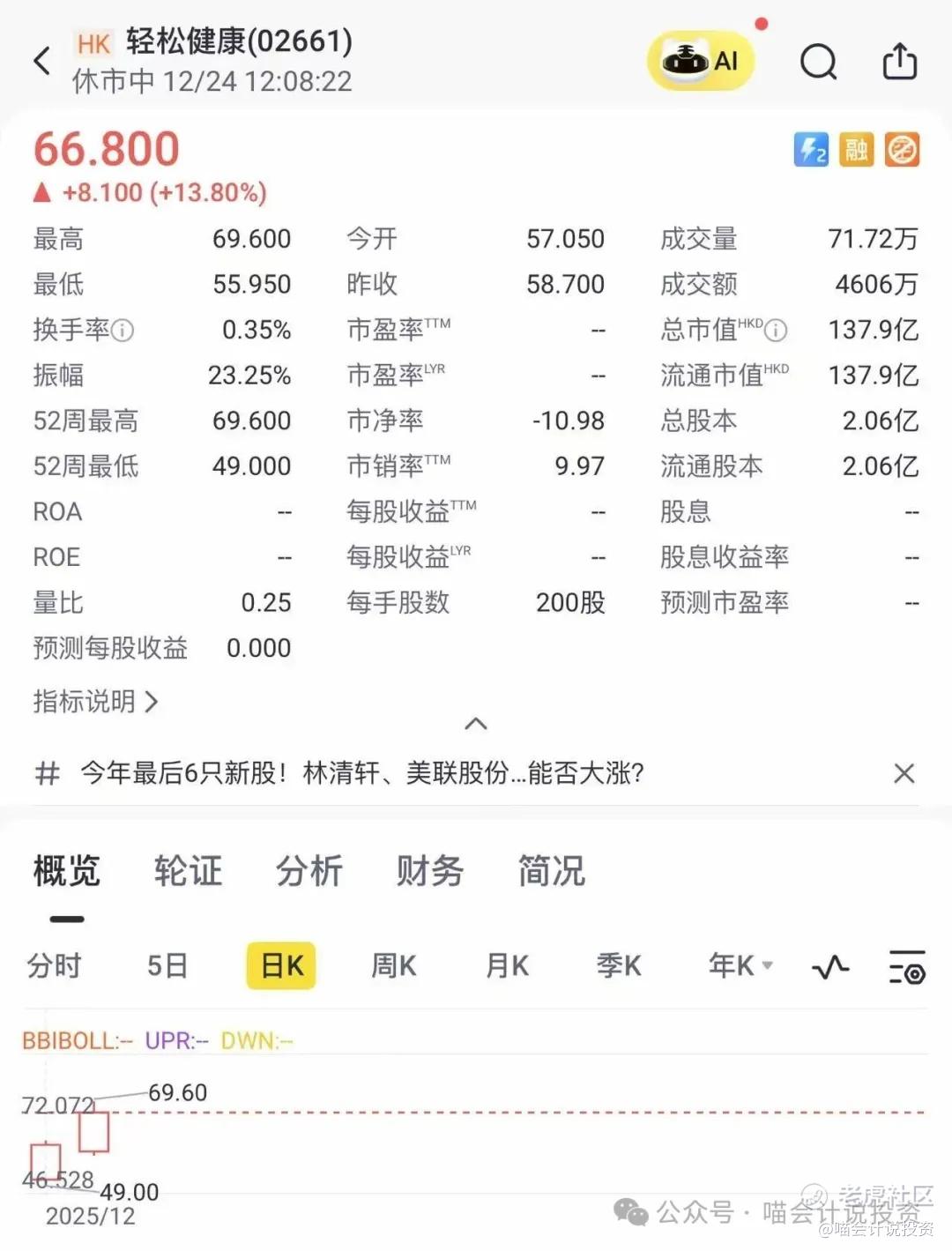 《港股打新——轻松健康,翻倍可入通!》——直接翻倍了