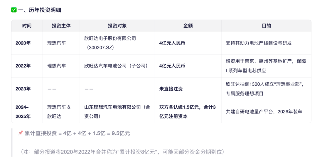 3 、理想汽车排在欣旺达的头牌,对于爆出的这一起诉,理想汽车也处于尴尬状态。一方面,理想可能是和欣旺达绑定最深的汽车企业,是用户也是股东。公开数据显示,理想汽车投资欣旺达超过 8 亿,最新的合资3 亿成立了山东理想电池。