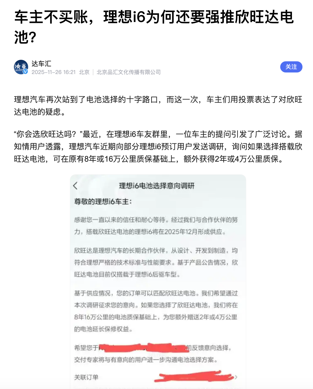 4 、理想车友群公众号和公众媒体报道显示,理想汽车 2026 年的新车还是选择欣旺达,在被起诉之后,这个恐怕给新的理想选手们带来负面加分。