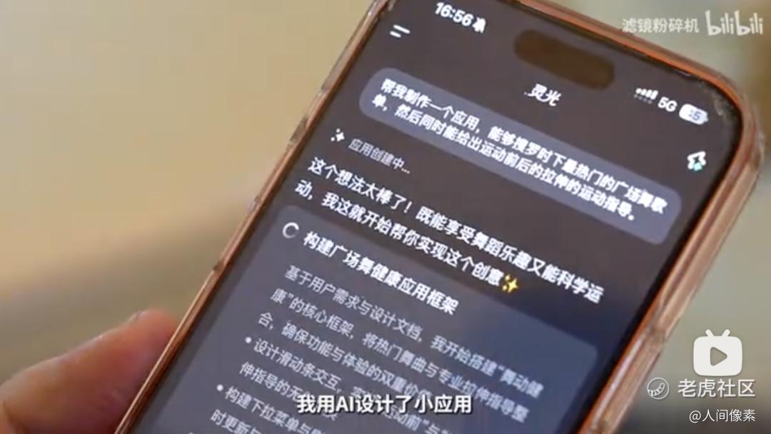 UP 主《谣言粉碎机》的主播毕老师还分享了帮自己妈妈“手搓”广场舞助手的过程。他让灵光设计了一个小应用,让它可以实时调用大模型数据,推荐时下最热门的广场舞歌单,并且按照曲风进行排列,在妈妈的要求下,这个应用还加上了拉伸指南。