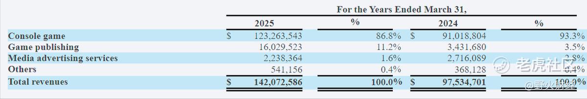 根据GCL上一个财年数据,当年游戏发行收入逾1600万美元,占总收入比例为11.2%。游戏发行的业务营业成本为1100万美元,即毛利润为500万美元,毛利率约31%,远远超过其基本盘业务Console game(主机游戏)的大约11.4%毛利率。
