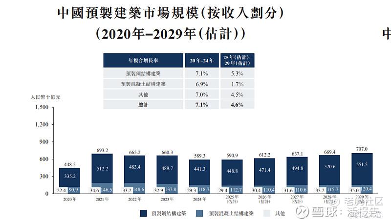 根据弗若斯特沙利文报告显示,于整个中国建筑行业中,预制建筑市场正处于快速发展阶段,2024年整体渗透率达到29.3%,较2020年的20.0%显著提升。随著国家"双碳"战略的深入推进和绿色建造标准的不断提高,预制钢结构建筑凭借其环保、高效、可循环利用等优势,在工业建筑领域的应用比例持续扩大。预计到2029年,中国预制建筑整体渗透率将达到35%以上,为相关企业创造了广阔的市场空间。