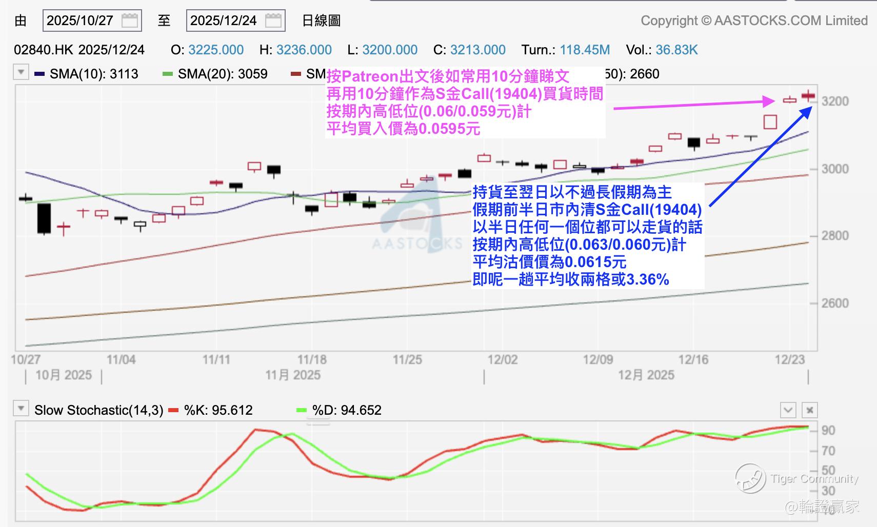 上个星期喺呢度拣嗰只S金Call讲紧系2027年先至到期,所以揸住过呢四日假期就无问题啦;而如果你系直接买咗 $SPDR GOLD TRT(02840)$ 嘅话,当然更加无事啦,因为根本无时间值嘅问题存在添。
