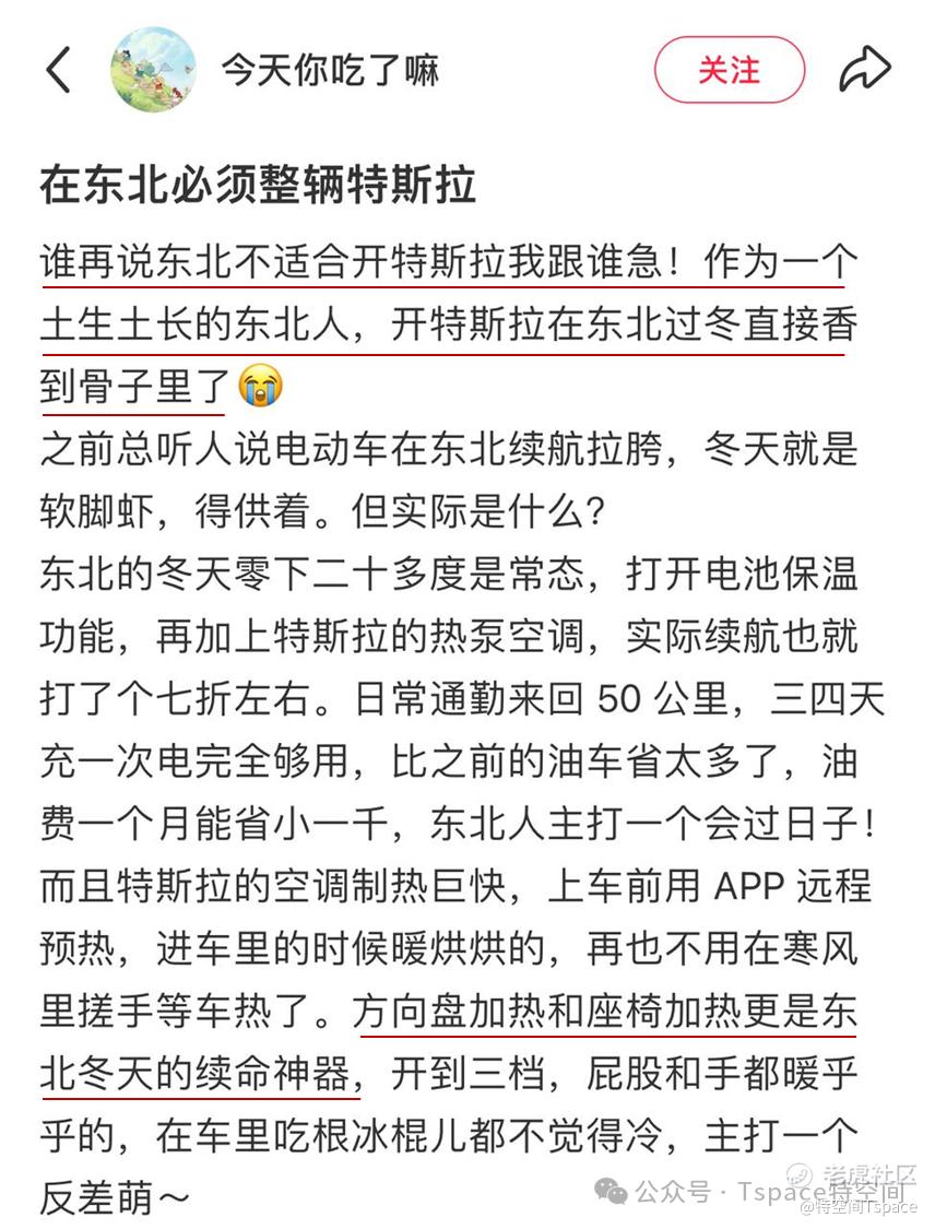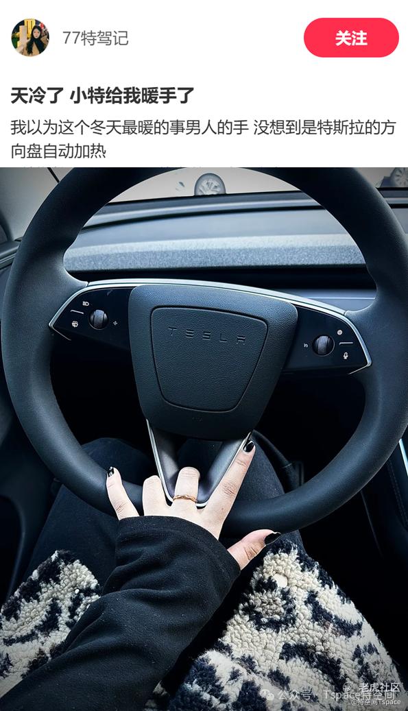 “冬天最暖的事,就是特斯拉替我暖手了。”