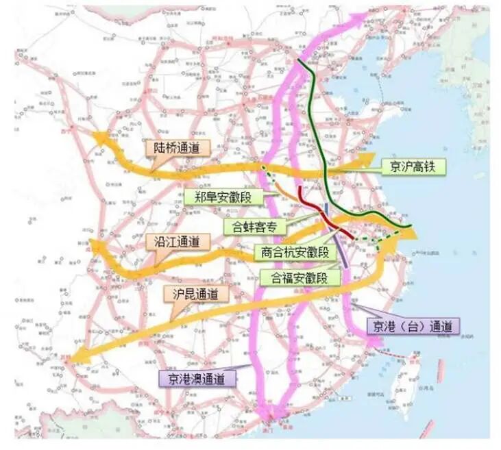 “八纵八横”高铁网中,京沪通道、京港(台)通道、沿江通道(沪渝蓉高铁)经济价值最高,串联京津冀、长三角、粤港澳大湾区、成渝经济区最发达城市。