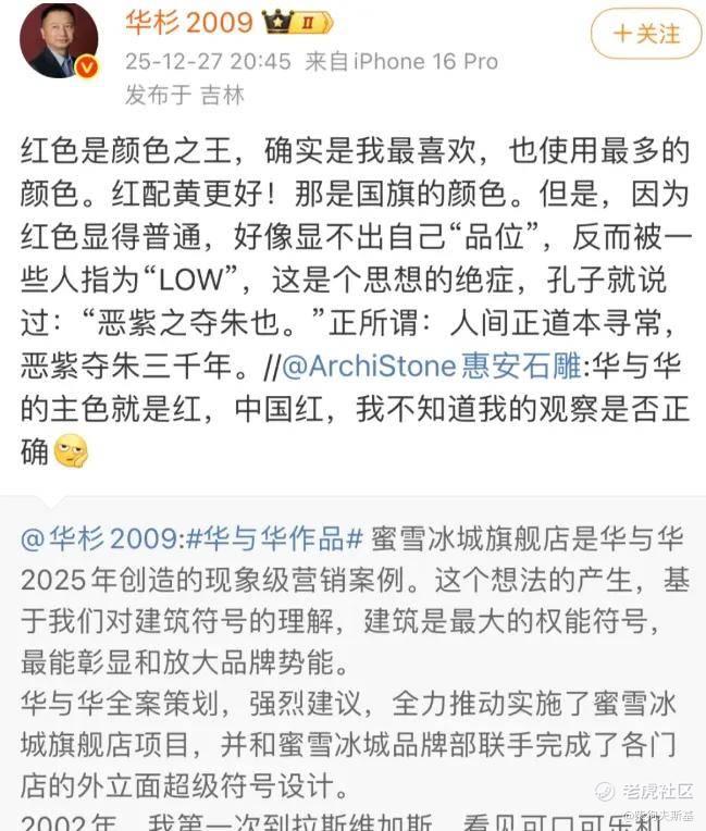 昨日,华杉在社交媒体上开炮,称觉得蜜雪冰城红色设计low,是思想绝症华与华华杉怒怼质疑:觉得蜜雪冰城红色设计low是思想绝症……