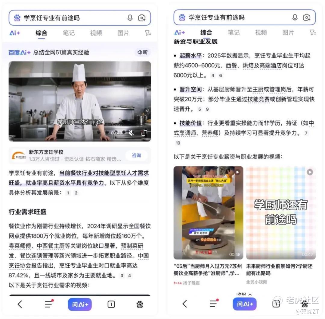 比如中国东方教育,在招生过程中就观察到越来越多用户不再直接搜索具体学校名称,而是带着困惑与决策需求发起搜索,如“学什么技能更好就业”“没有基础能不能学会”“毕业后发展如何”等等。面对这一变化,他们自今年八月尝试使用新搜索,鉴于数据正向表现,当前正在加速200+院校覆盖。