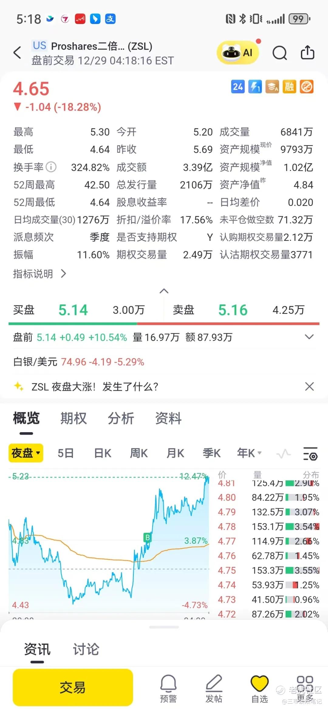 $Proshares二倍做空白银ETF(ZSL)$ / $2倍做多AVGO ETF-Defiance(AVGX)$ / $2倍做多NVDA ETF-GraniteShares(NVDL)$ / $2倍做多AMD ETF-GraniteShares(AMDL)$
