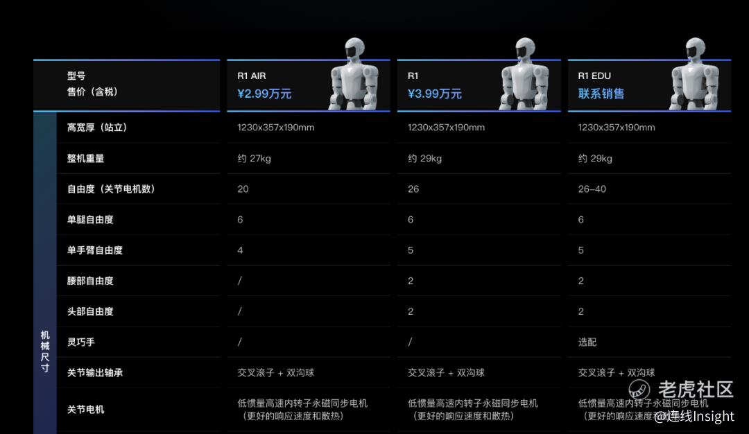 宇树科技R1不同版价格及配置,图源宇树科技官网