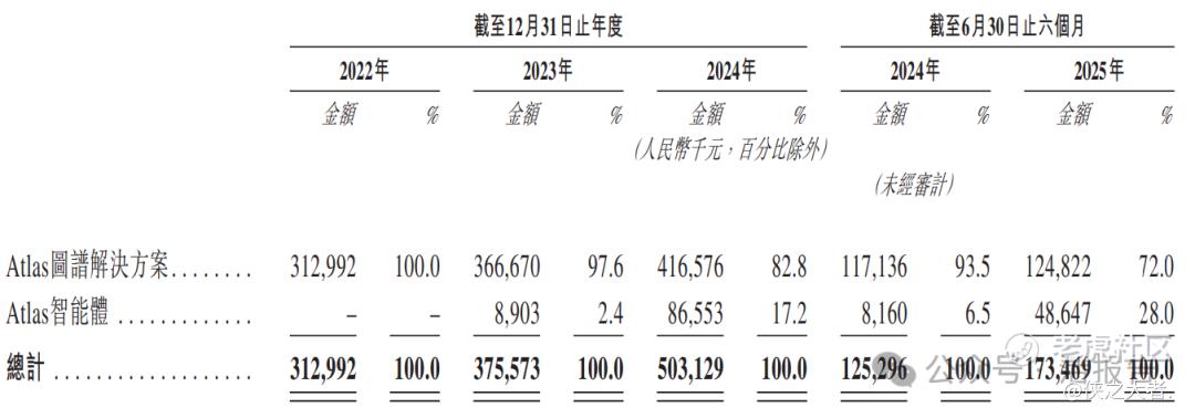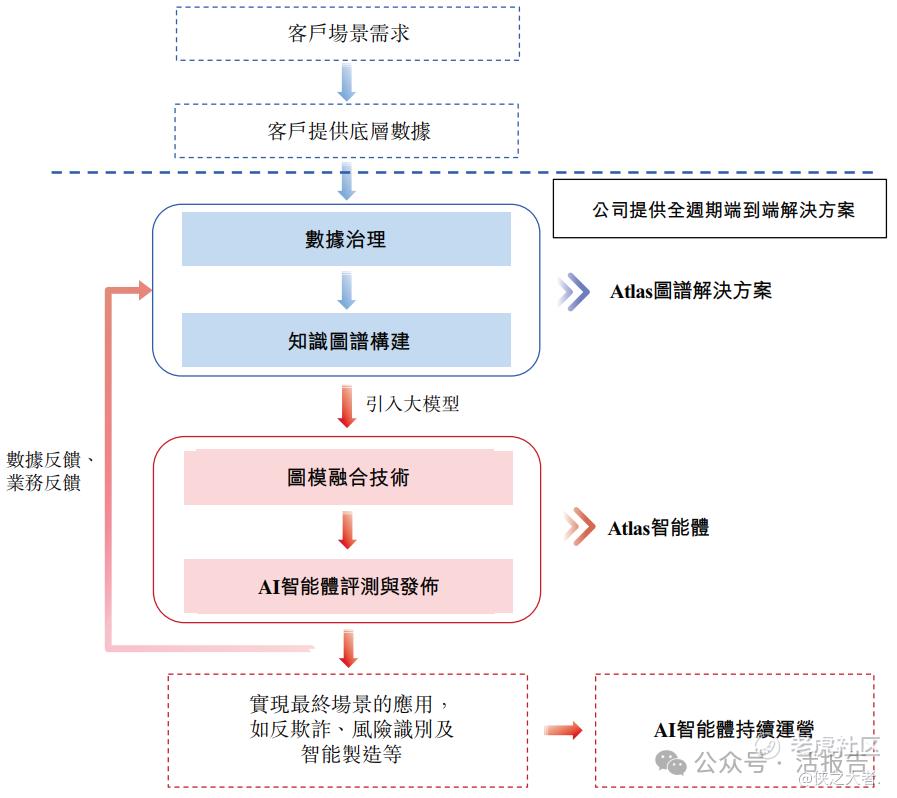 业绩记录期内,公司向客户提供两项解决方案:(i)Atlas图谱解决方案,基于公司强大的图计算与数据分析能力构建,包含DMC数据智能平台、Atlas知识图谱平台及AtlasGraph图数据库;(ii)Atlas智能体,基于公司图模融合技术开发的智能体解决方案。