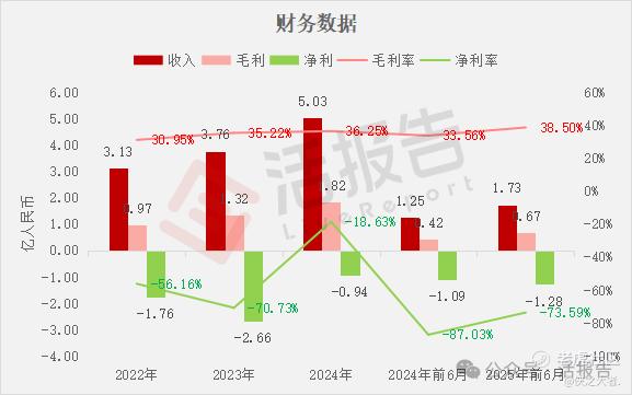 收入分别约为人民币3.13亿、3.76亿、5.03亿、1.25亿、1.73亿,2025年前6月同比+38.45%;