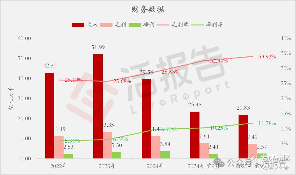 收入分别约为人民币42.81亿、51.99亿、39.54亿、23.48亿、21.83亿,2025年前9月同比-7.02%;