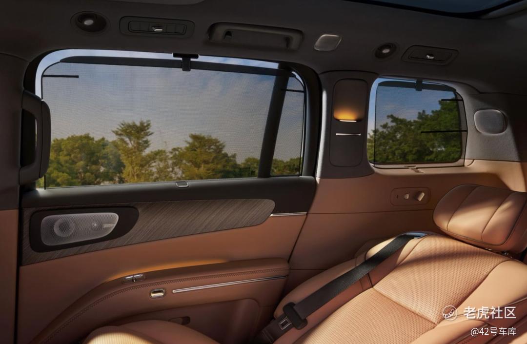 另外,D19 的六座都支持加热功能,前两排提供吸风式通风和十点按摩。吸风式方案避免了冷风直吹皮肤的不适,更适合长时间乘坐的家庭场景。二排和三排都带了遮阳帘,遮光率都超过了九成。