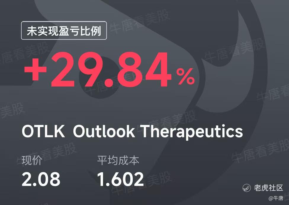 $Outlook Therapeutics, Inc.(OTLK)$ 又一个近30%的收益。 $SPDR S&P Biotech ETF(XBI)$ $英伟达(NVDA)$ $特斯拉(TSLA)$ $亚马逊(AMZN)$