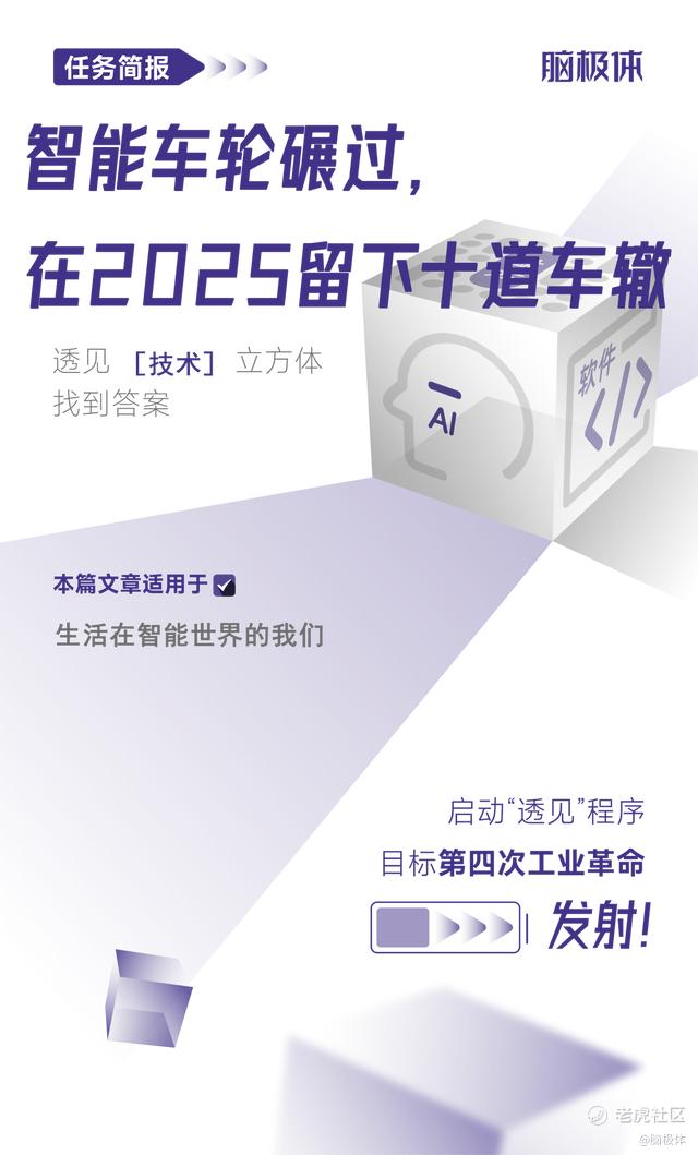 按照惯例,脑极体为大家总结了2025年与智能化有关的十件大事。顺着这十道车辙,可以清晰看到智能车轮接下来要驶向何处。既然智能车轮不为我们停留,那我们不妨预判它的下一站。提前去站点等候它,然后上车,出发。