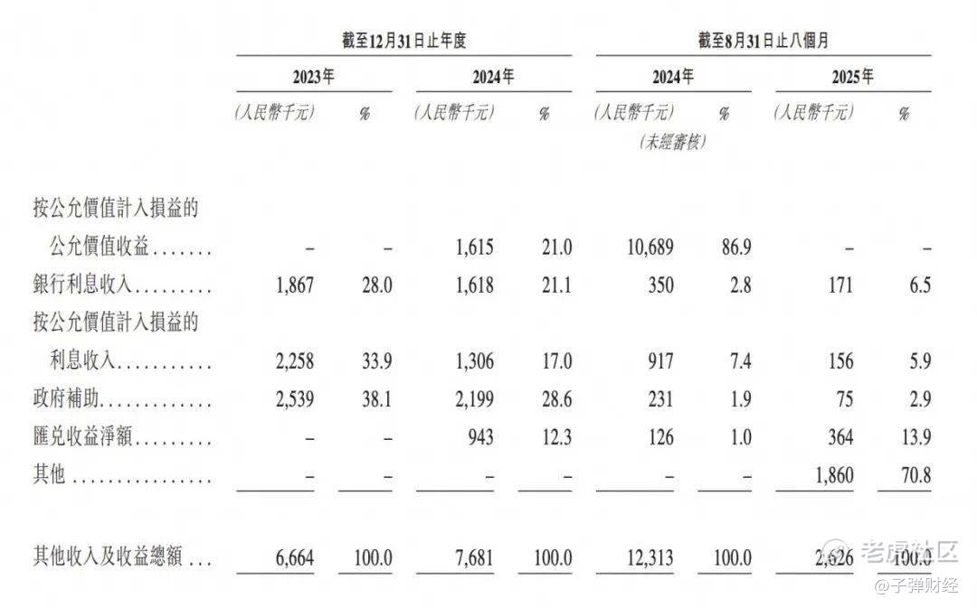 而翰思艾泰自身无主营收入,在2023年和2024年的“其他收入和收益”,仅分别为666万元与768万元,大多来自于政府补助于利息收入。值得注意的是,2024年前8个月的收入还高出2024年全年收入不少。