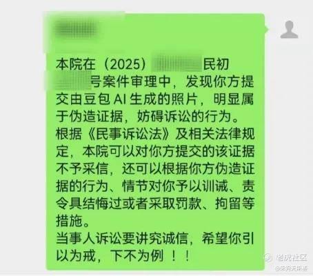 法院认定利用AI生成照片作伪证构成"伪造重要证据",违反《民事诉讼法》第114条,涉嫌妨害诉讼秩序,依法可处训诫、罚款、拘留,甚至追究刑事责任。