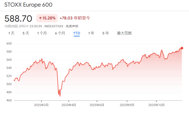 在此背景下,欧洲股市在年初集体走高。数据显示,泛欧斯托克 600 指数在关税震荡前就已上涨 10%,年初至今,该基准股指累计上涨 15%。