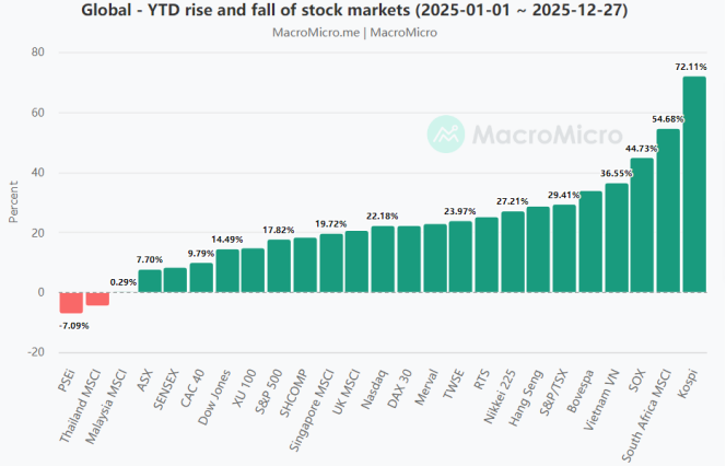 在全球央行掀起 “降息潮”、释放充裕流动性的大背景下,多国股市将 2024 年的涨势延续至 2025 年,在宏观经济与地缘政治冲击频发的一年中成功破浪前行。