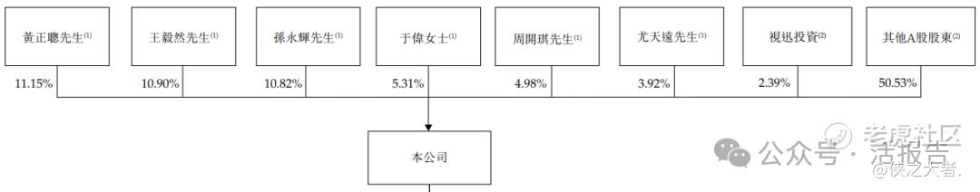 一致行动人黄正聪先生、王毅然先生、孙永辉先生、于伟女士、周开琪先生、尤天远先生分别持股约11.15%、10.90%、10.82%、5.31%、4.98%、3.92%,合计约47.08%。