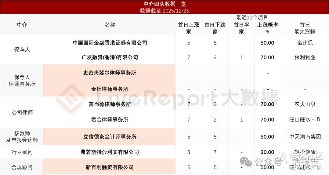 据**大数据统计,视源股份中介团队共计9家,其中保荐人2家,近10家保荐项目数据表现普通;公司律师共计2家,综合项目数据表现尚可。整体而言中介团队历史数据表现有待提升。