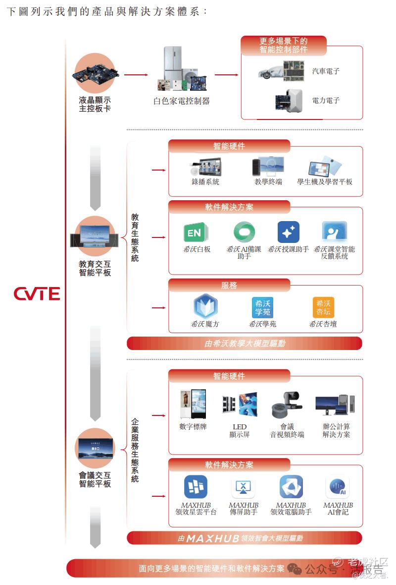公司已构建起一个涵盖智能终端与特定场景解决方案的生态系统,提供包括商用显示产品和系统、音视频(AV)设备及系统、计算解决方案及其他配套硬件及面向核心应用场景的垂类人工智能驱动(「AI驱动」)软件解决方案在内的产品组合,重点布局教育及企业服务场景。